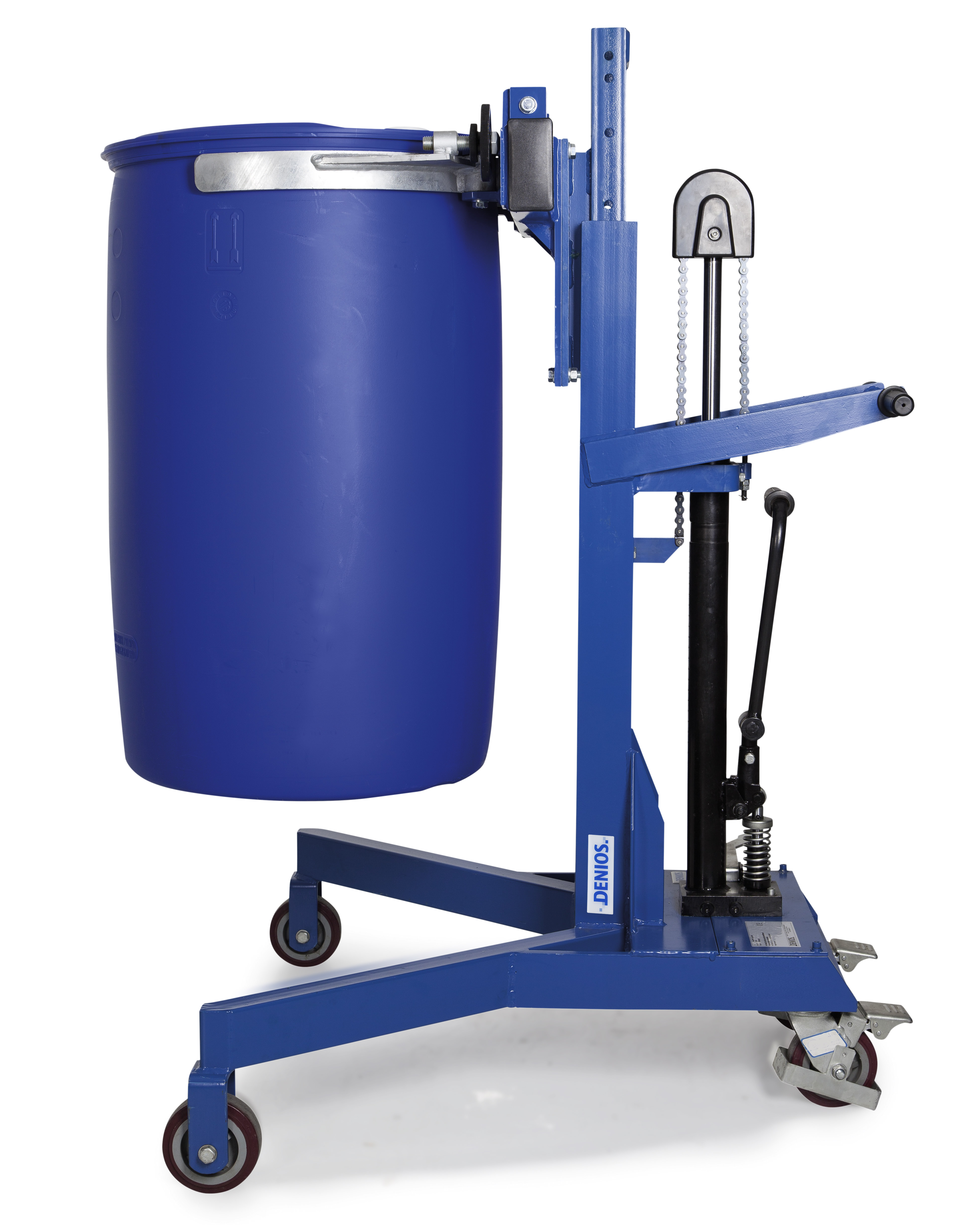 通过手轮可调节的桶夹,便于适配不同尺寸的桶